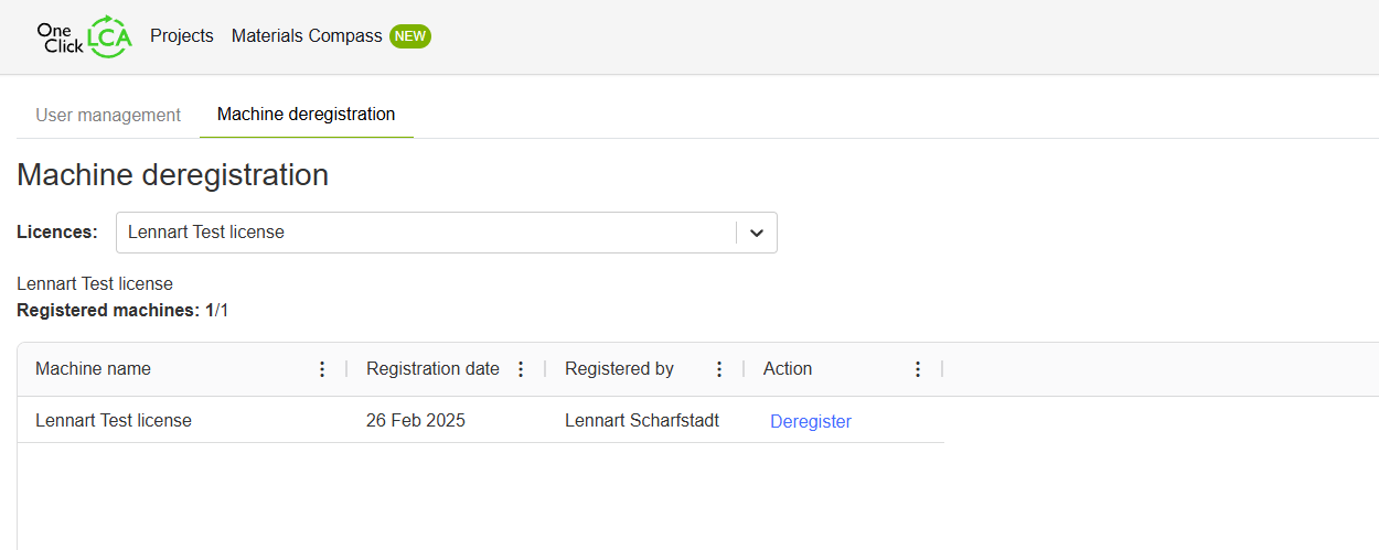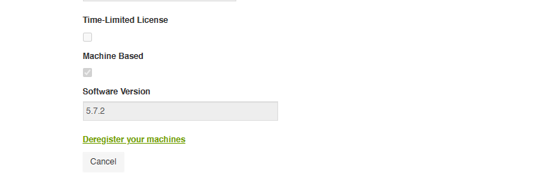To deregister machines click on your license, scroll down and select “Deregister your machines”.